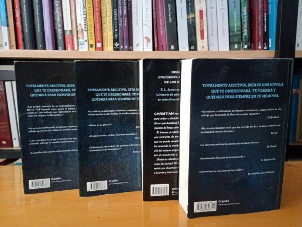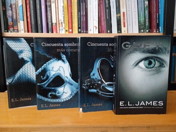 Pack de cuatro libros de la saga "Cincuenta sombras" de E. L. James incluye la trilogía original ("Cincuenta sombras de Grey", "Cincuenta sombras más oscuras" y "Cincuenta sombras liberadas") y el cuarto libro, "Grey", que narra la historia desde la perspectiva de Christian Grey. La saga narra la relación entre Anastasia Steele, una joven e inocente estudiante, y Christian Grey, un millonario enigmático e intimidante, explorando su compleja relación marcada por los deseos, los secretos del pasado de él y el control.