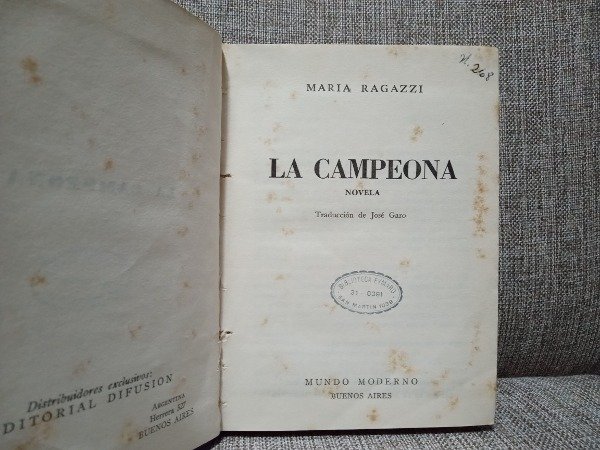 · Título - Autor : La Campeona - Maria Ragazzim - Tapa Dura - 1959