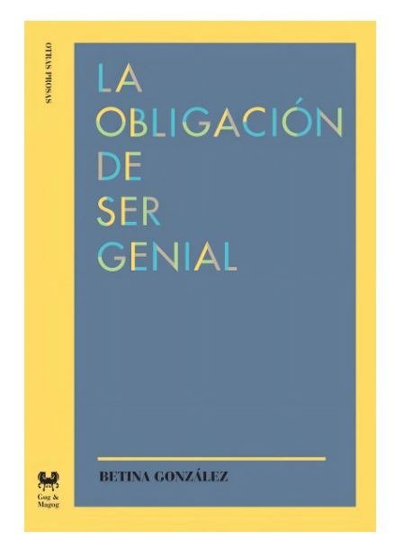 Sinopsis: LA OBLIGACIÓN DE SER GENIAL «La obligación de ser genial es un pasaje a la central de operaciones de uno de los proyectos más personales de nuestra literatura. Betina González ha captado el corazón secreto de la escritura y lo ilumina apostando a la fuerza liberadora de la imaginación. Con una claridad apasionante se pregunta de qué manera nos relacionamos con los libros que escribimos y leemos». Esther Cross BETINA GONZÁLEZ Villa Ballester, Buenos Aires, Argentina . Estudió comunicación social en la Universidad de Buenos Aires, donde trabaja como profesora e investigadora. Obtuvo una maestría en escritura creativa en la Universidad de Texas en El Paso y un doctorado en literatura latinoamericana en la Universidad de Pittsburgh. Su primera novela, Arte menor, ganó el Premio Clarín en 2006, con gran repercusión entre la crítica y los lectores. El reconocimiento internacional le llegó en 2012 con el Premio Tusquets por su novela Las poseídas. También es autora del libro de ensayos sobre lectura y escritura La obligación de ser genial y de la colección de cuentos El amor es una catástrofe natural. Edad recomendada: Adultos.