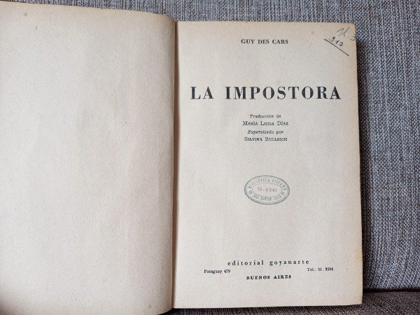 · Título - Autor :La Impostora - Guy Des Cars - Tapa Dura - 1958