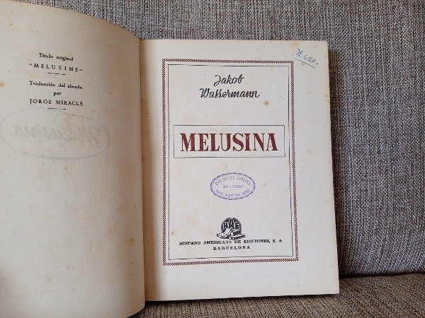 · Título - Autor : Melusina - Jakob Wassermann - Tapa Dura 1946